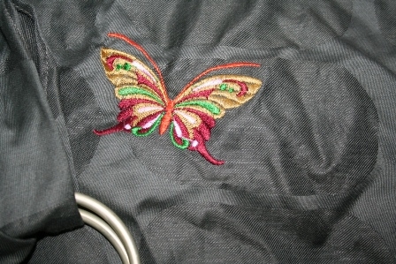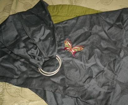 Слинг с кольцами Бянка из жаккардового полотна с бортиками и вышивкой. Хорошо подойдет для подросшего младенца.