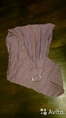 Металлические кольца диаметром 6-7 см. Состав: 50% лен, 50% хлопок. Слинг разношен в хорошем смысле (новые обычно более жесткие, поэтому разношенные ценятся выше))))) этот слинг подходит для открытой переноски - под слингокуртку ребенка в нем не посадишь. Зато он очень удобен для совсем маленьких (мы с трех недель). Маме можно спокойно заниматься своими делами, даже по торговым центрам гулять. Фотография не очень хорошо цвет передает, но вы можете посмотреть цвет и на других сайтах. 500 рублей.
