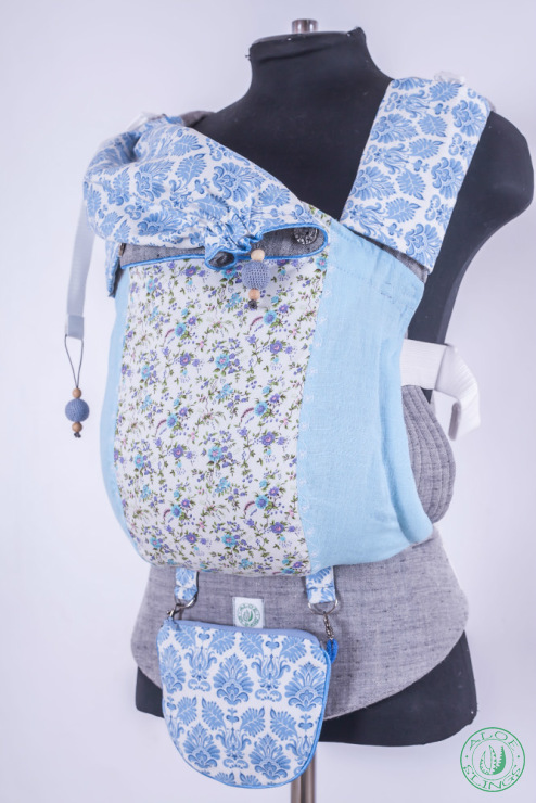 Доброго! У Алоэ есть разные лямки, в т.ч. как у май-слинга. Эти прямые с поролоном. Можно носить как прямо, так и крест-накрест. Это дизайнерская серия. В симпли не входят ни накладки, ни сумочка.