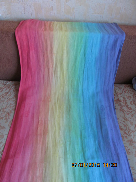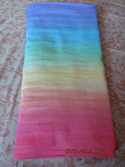 Продаю слинг-шарфДидимос конопляные нино, 7ка 50% конопли. Разношен, но это не предел. Корзинка для тяжелых поп. Крашеный в радугу. Покраска отличная, пятен нет. Есть немного видный переход цвета от фиолетового к синему, в намотке не видно ничего. Покупала новый шарф для покраски, коробка при нем.