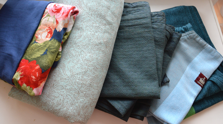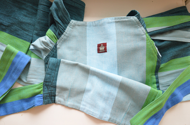 Май-слинг из шарфовой ткани "Беби-кинг", голубой с индиго и серым, носили любили, местами потрепан (в намотке не видно), в целом выглядит отлично 700р.