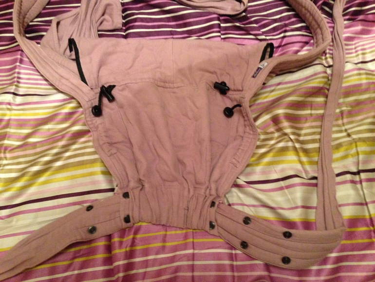 Он из шарфовой ткани, пыльно-розовый цвет, это было приоритетом при покупке) носили мы его несколько раз, когда мне надоело мотать шарф, но в рюкзаке еще нельзя было носить. То есть 2 месяца, но всего раз 7, есть еще коляска. Пользовались только для походов в поликлинику. Я вторая хозяйка, девушка носила прошлой весной. Шарф куплен весной 2014, то есть ему еще года нет. Стирать как не интересовалась еще, перед продажей постираю, узнаю как. Предполагаю, как и любой слинг-шарф.