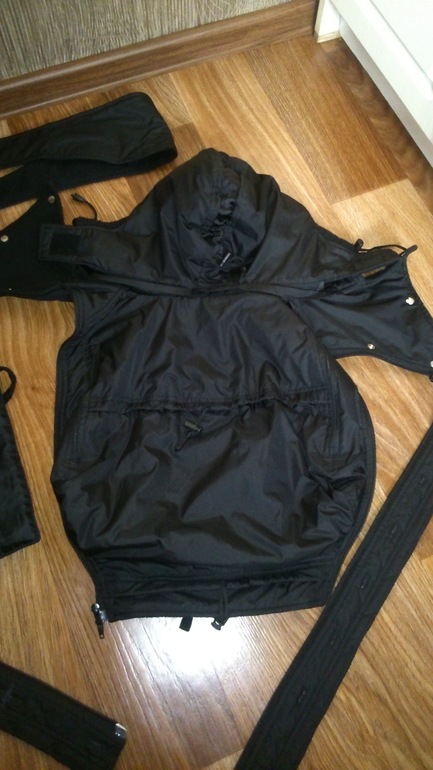 Теплая, на холодную весну-осень и на зиму,там подкладка теплая привязывается. К своей куртке пришиваете пуговицы,пристегиваете боковины вставки и потом на молнюю саму вставку.до +10 примерно носить можно и ниже соответственно.