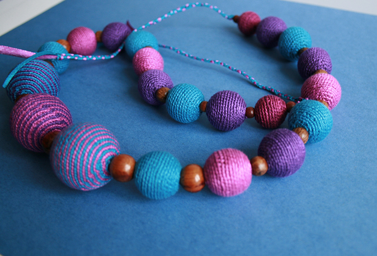 Можно смело теребить и просто с удовольствием носить. Грызть под присмотром, т.к. использован лак.