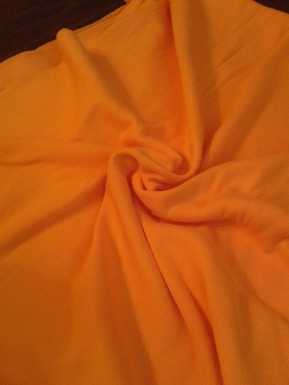 "Оранжевая мама", цвет оранжевый, размер 6 (4,7м). Косяков нет, но цвет уже не такой ядреный как у нового, но красивый! В центре - карман. Пусть 600р. Мы с шарфом в Питере. ПР сверху.