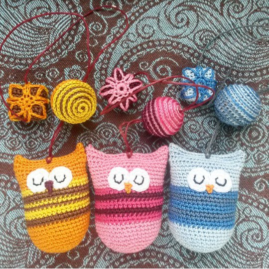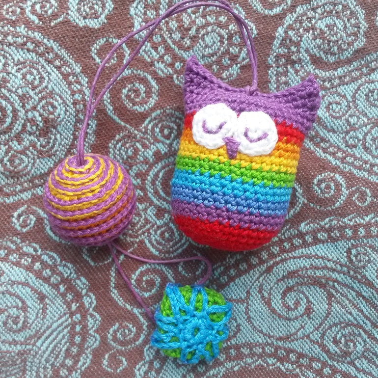 Внутри совушек контейнеры от киндерсюрпризов и маленькие можжевеловые бусинки, они негромко гремят. Можно на заказ сделать просто мягкую или со специальным гранулированным наполнителем.