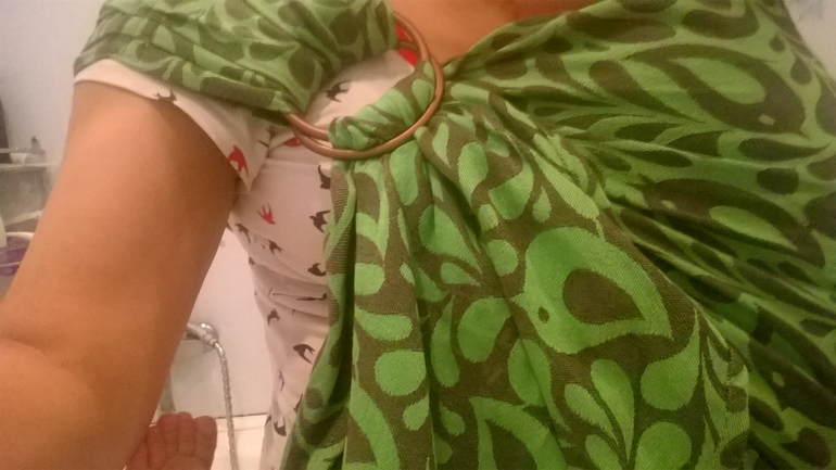 У меня 46 размер и тоже хорошо, у Вас просто чуть хвостик подлиньше будет. Но я люблю хвост хороший, его можно и под шею малышу накрутить и прикрыть, когда дует или когда кормишь прикрыться. Он такой многофункциональный!