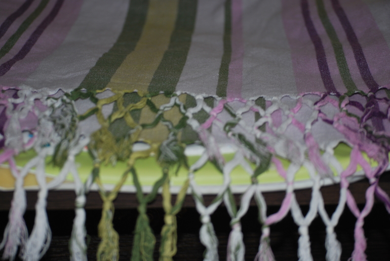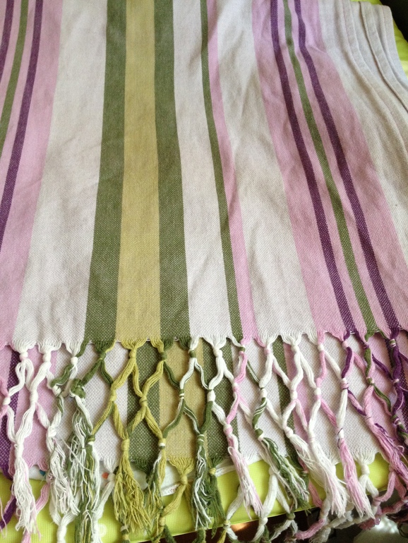 2. .Гирасол дикая орхидея. Уток светло-розовый,5. Замечательный редкий полосатик с заводской бахромой. Есть пара родных узелков. Постирав, посушив и детально рассмотрев, обнаружила пятнышко почти в хвосте. Едва уловимо, до этого носила и не видела. Цена 3000.
