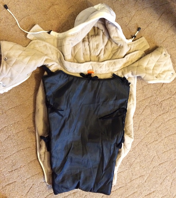 Сама вставка черная, внутки флис коричневый. Поясок для поддержки головы ребенка, если он заснул