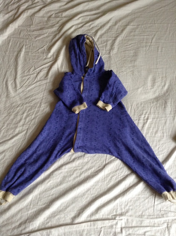 Фиолетовый это тот, который по температуре до того, что на двух молниях. На двух молниях сейчас действительно не поиспользуешь, мы его на улицу в +15-17 надеваем. А тот что я продала (фиолетовый) потоньше и его и в слинге идеально носить и дома ползать, если полы холодные.