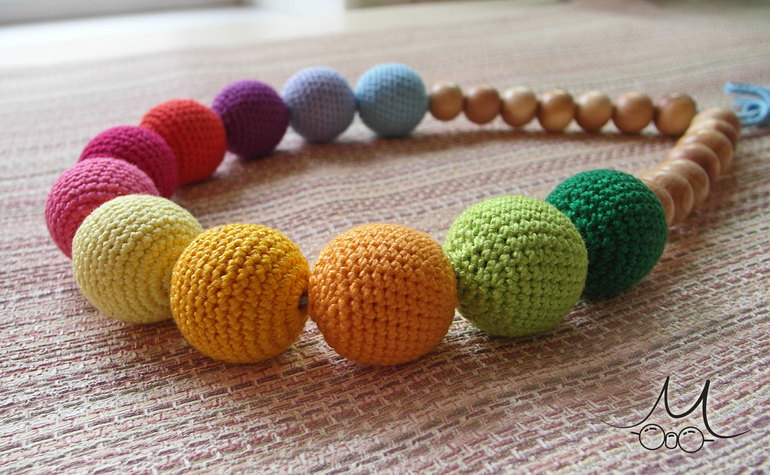 Длина от бусины к бусине 51 см + длинная плетеная веревочка для регулировки размера. Диаметр вязаной бусины 27 мм. 700 р.![]()