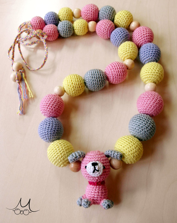 Продаю слингоаксессуарыВязаные бусы с милой собачкой Розочкой.