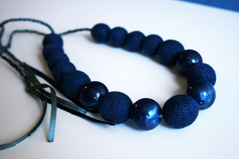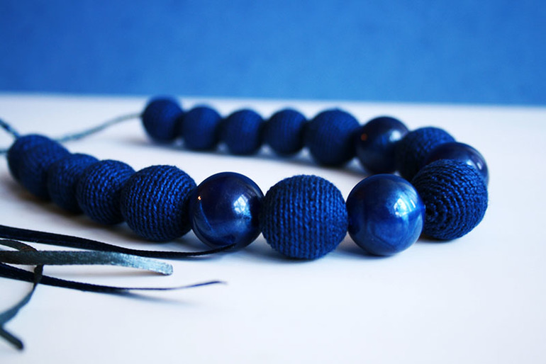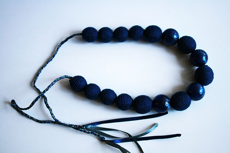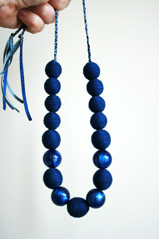 собрала бусы - синие без акриловых и прочих бусин. на вощеном шнуре.