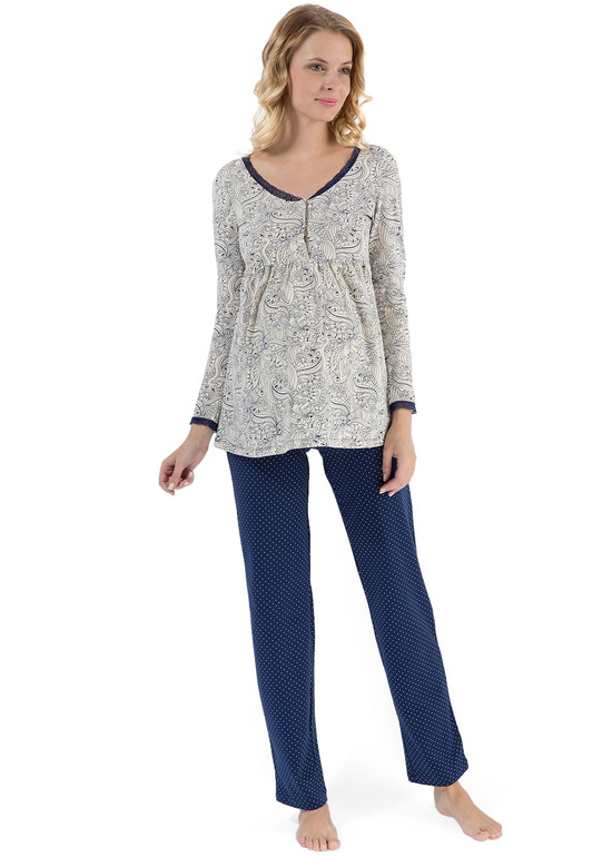 Комплект для дома и сна "Санти" экрю с синим узором для беременных и кормящих
