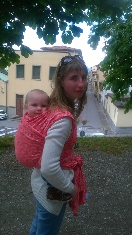 50% льна, уже подразношен нетяжелым ходунком. Шикарен в цвете, нежалко его совсем, ура таким слингам=))