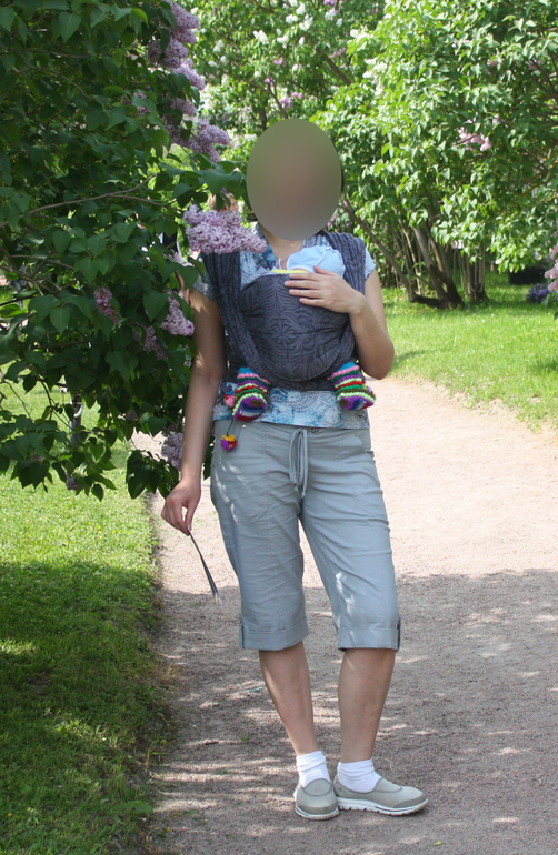 Резюмирую: идеальный бюджетный шарф для начинающей слингомамы, так как весьма прост в намотке, держит крепко, узел не ослабнет ни на йоту даже после 4 часов прогулок. Мягкий, нежный, пойдет с первых дней жизни. Достаточно тонкий, чтобы укачивать дома и не спариться (как мы и делали, а мне всегда обычно жарко).