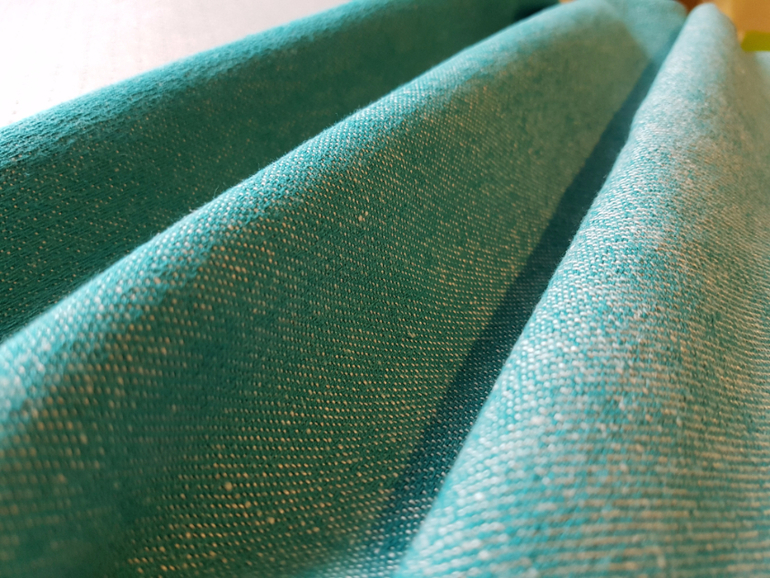 Мягкий лен. Градация не только в цвете, но и в фактуре, насыщенный зеленый бархатистый хлопок, светлая сторона с фактурными льняными нитями.