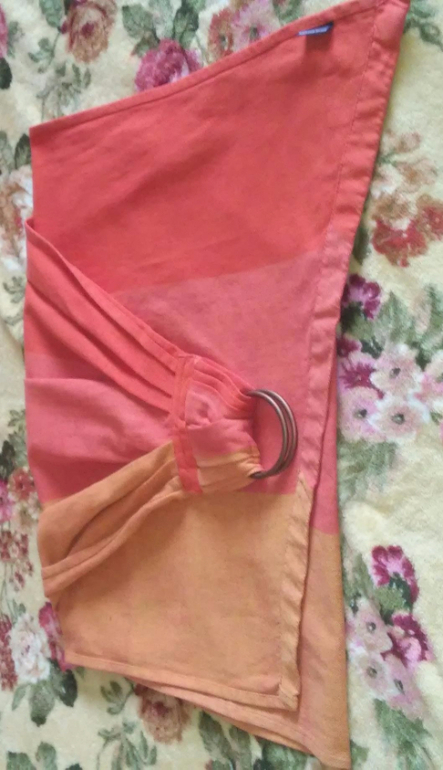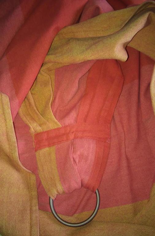 Продаю слинг с кольцами1. Слинг с кольцами Гирасол. Состояние хорошее, есть мелкие косячки, в намотке не видны. От колец по длинной стороне 203, по короткой 184. Пошив Екатерины Карауш. Цена - 2200р