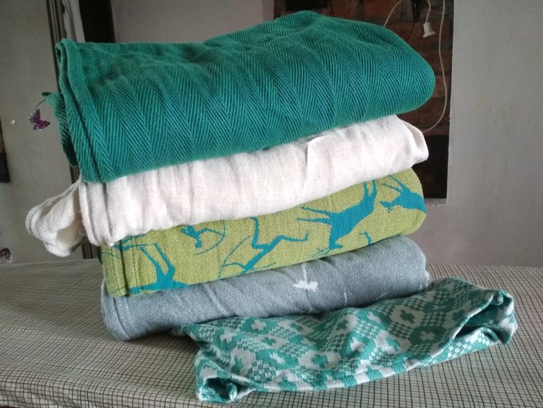 Яро Йолка, 4й размер, 100% хлопок, ношен активно, мягкий, широкий, пухлый, пластичный универсальный хлопок. Есть несколько маленьких затяжек, легко вправляются. 2000 Диди лен-натур, 3ка, 100% лен, нами почти не ношен, лен довольно мягкий, хороший коротыш на лето. Есть намечающиеся катышки, кажется, была выбившаяся ниточка (наверное, я ее подрезала, сейчас найти не смогла). Есть одно малозаметное пятнышко, если не отстирается - скину в цене. 1700 Вольга Мезолит Весна 6ка, 100% хлопок, 2 грейд, отличный шарф, очень хорошо разношен, можно мотать и на малыша. Унесет даже пятилетку. Оставила бы себе, но к узору так и не привыкла. Дефектов не нашла. В комплекте фирменная сумочка, саше и открытка. 2500 Нати зеленые одуванчики с бамбуком, 70% бамбук 30% хлопок, 340 см, цвет скорее серый с белым. Пухлый, мягчайший, фланелевый даже. Очень хорош для новорожденного, нежнейший. Дефектов не нашла. 2300. Спб, почта, сбербанк. Почтовые расходы пополам. Давно выпала из темы. Если цена, на ваш взгляд, завышена - готова уступить (если приведете пример, где дешевле). Дома собаки и ангорский кролик, к шарфам не допущены. Обмен рассматриваю только на рюкзак Алоэ для 4-летки.
