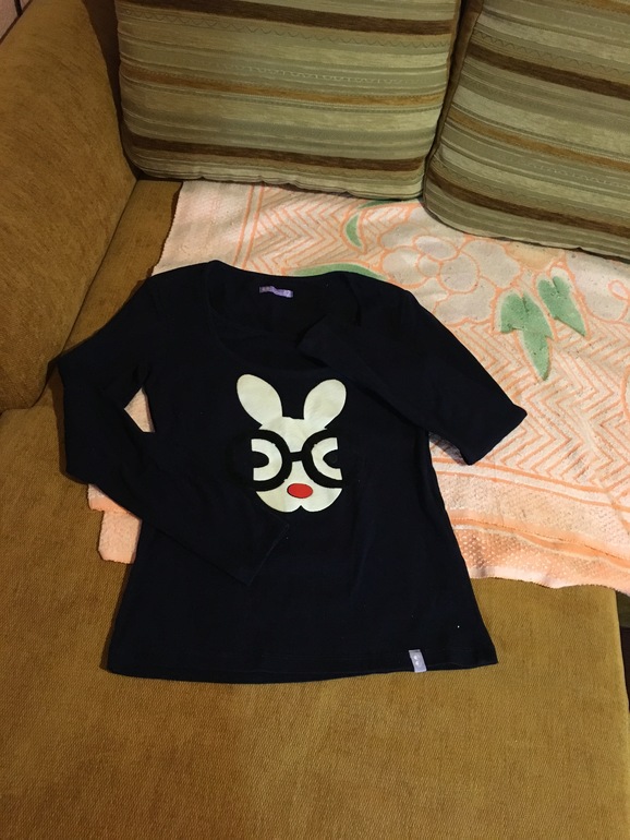 2. Лонгслив с зайцем темно-синего цвета. Размер 42, состояние хорошее, 400 р.