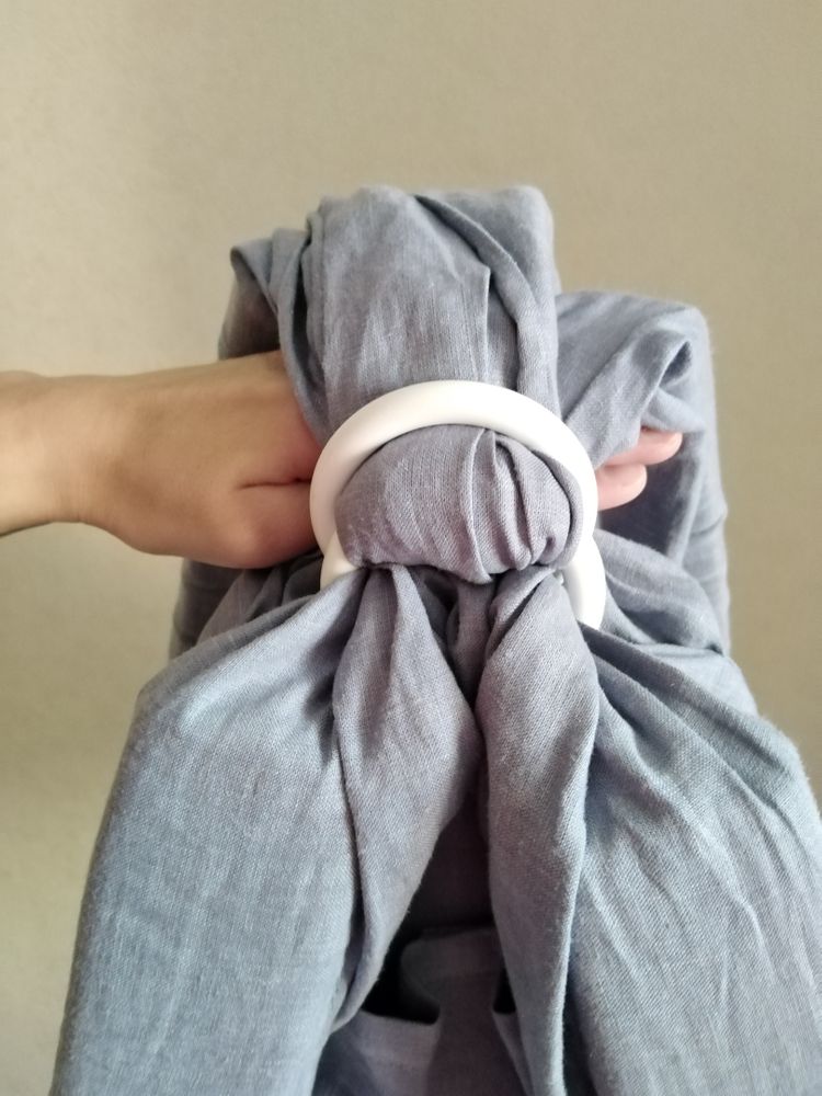Слинг на кольцах с подкладом и плотными, но мягкими бортиками и кармашком. Для мамы (родителей) ростом 172 - 174 см. Возраст использования - с рождения до полутора лет.