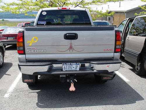 А вот у нас ездят крутые джипы, так у них сзади кое-что покруче висит :)))) Пардон, яйца :)))
