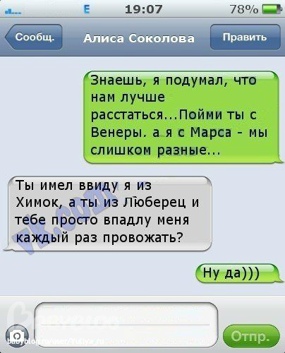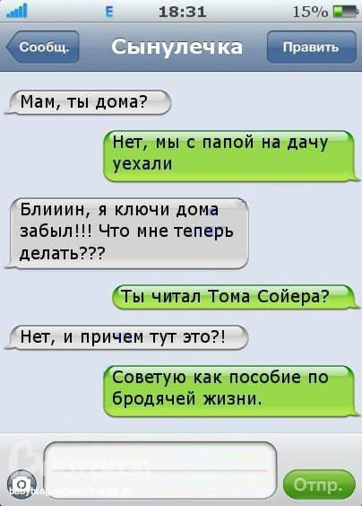 Юлия Тимофеева в Юмор 13 лет Много ВК- ассорти:) Веселые картинки Посмотрите еще 20 записей на эту тему Отменить Ответить ❂Мушка-норушкА❂ Я таперь знаю как назову собаку, как только её заведу))))))Та-Дам!!!!!!!!!!Папа с смс тоже повеселил)))))) 11.12.2012 Ответить Юлия Тимофеева 12.12.2012 Ответить Дарья Ой РЖАКА! Особенно хохотала на счет папы с смской! 11.12.2012 Ответить Немного смс-картинок ))) Чаты Беременных Выберите чат: Январята-2026 Февралята-2026 Мартята-2026 Апрелята-2026 Майчата-2026 Июнята-2026 Июлята-2026 Августята-2026