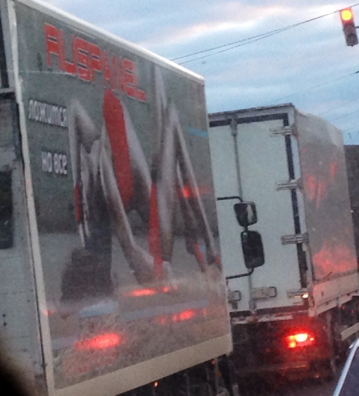 Из жизниНет,это не район красных фонарей!Все невинно,но слабонервным такую рекламу строительных панелей лучше не видеть!На днях повстречали в пути.Прошу прощения за качество-руки тряслись от хохота.Так подействовало на нас сочетание призывно изогнувшейся красотки с надписью "Руспанель ложится на все"!)))