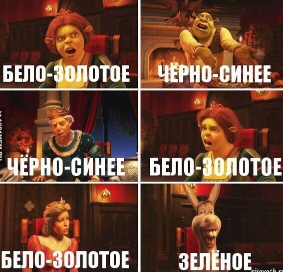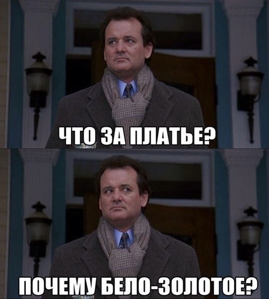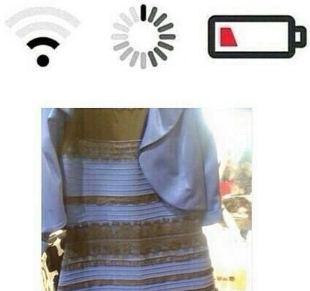 А-ха-ха и слава Богу. Вверху платье — бело-бежевое, части интернета оно таким и кажется, а части, под определенным углом, на 2-й...-й раз черно-синим.