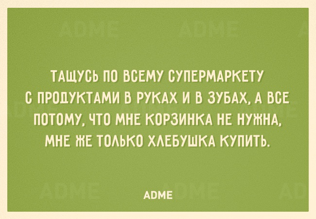 Про супермаркет- точно про меня, захожу ТОЛЬКО за хлебушком, потом пакеты по дороге к кассе из всех рук валятся
