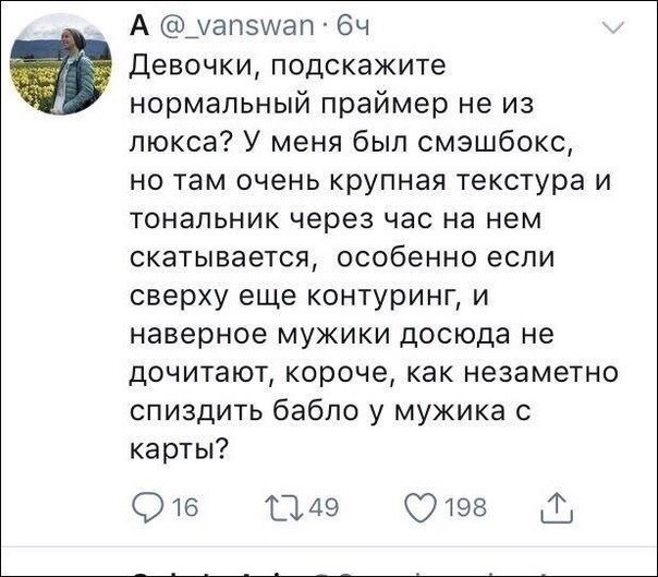 Astrahentium в Юмор 7 лет Читать до конца 😂 О женщинах Посмотрите еще 20 записей на эту тему Отменить Ответить Анастасия МИ-6 отдыхает) 26.11.2018 Ответить Astrahentium 😂😂😂😂 26.11.2018 Ответить татьяна 😂😂😂 25.11.2018 Ответить Катерина 😂😂😂 25.11.2018 Ответить Анна :)))))))))))) 25.11.2018 Ответить Она хотела бы "Рождественский Гусь" читает автор Чаты Беременных Выберите чат: Январята-2026 Февралята-2026 Мартята-2026 Апрелята-2026 Майчата-2026 Июнята-2026 Июлята-2026 Августята-2026
