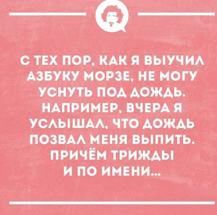 Рита в Юмор 5 лет Учу азбуку морзе)) Веселые картинки Посмотрите еще 20 записей на эту тему Отменить Ответить Евгения 🤣🤣🤣🤣🤣👍 21.07.2020 Ответить Всё повторяется)) Ржунемогу))) Чаты Беременных Выберите чат: Январята-2026 Февралята-2026 Мартята-2026 Апрелята-2026 Майчата-2026 Июнята-2026 Июлята-2026 Августята-2026