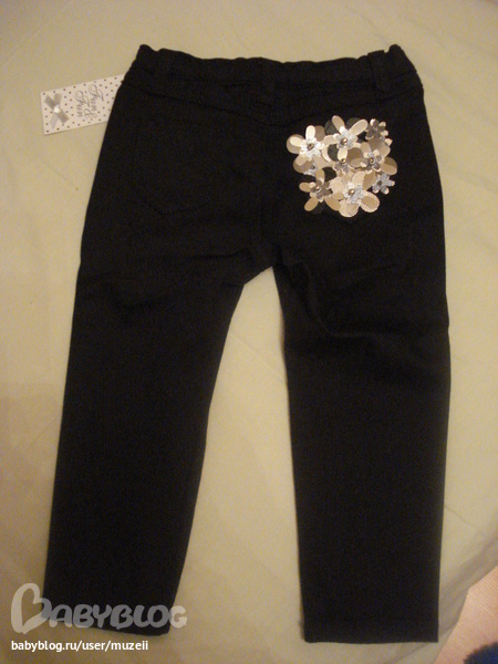 На заднем кормане цветы серебристые. Подходят на рост 90, по росту чуть меньше размера 2Т ОлдНеви и Крейзи8. Пояс с регулируемой резинкой.