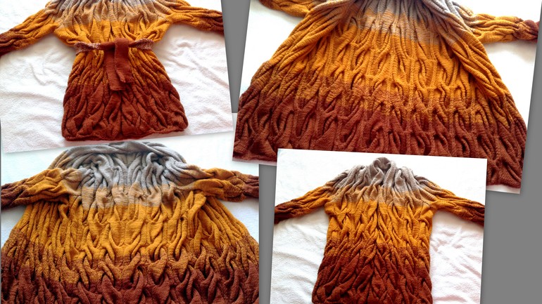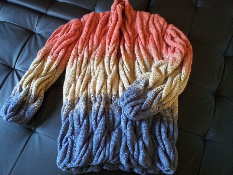Фотографии не очень хорошие. Я ее даже отстирать и отутюжить толком не успела - отелось поскорее, а поэтому качество пострадало. Но я когда перефотографирую, снова выложу - просто потому что хочется трубить на каждом углу об этой дивной пряже ))