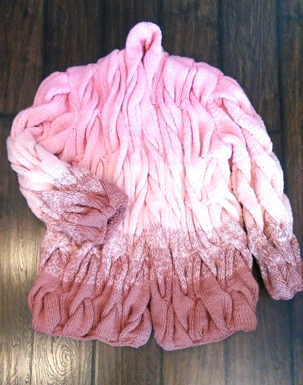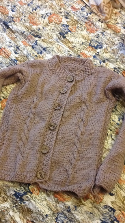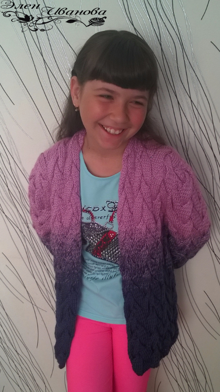 лало кардиган для дочки связан из белорусской п/ш в 7 сложений спицами 4,5, узор королевская коса