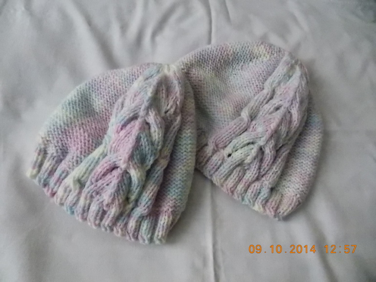 Связаны из полушерсти, очень мягкие, не колются. Весенний вариант. Снуд на мне в 3 сложения, рядом на фото - в 2. размер шапочек: взрослая 52-56 (на мужа даже налезла), детская 46 -50 (у моего ребенка 50)