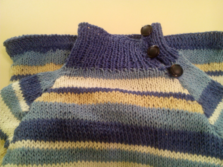 Вот такой полосатый реглан связался для сынишки на осень. Пришлось на горловину пришить пуговки - без них голова не пролезла)))))