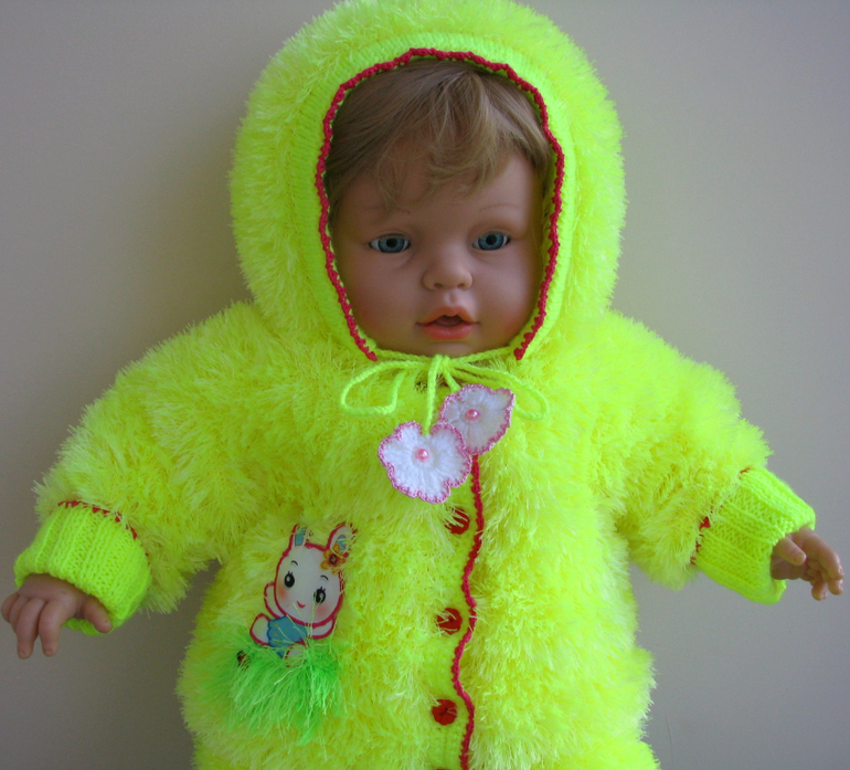 Костюмчик связан из Самбы,ушло 7 моточков. И почти 100 г. для отделки. Вязала для красавицы 6 месяцев. Манжеты откладные, капюшон отстегивается. Фото под катом.