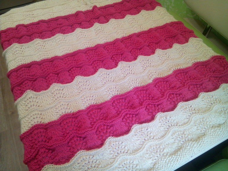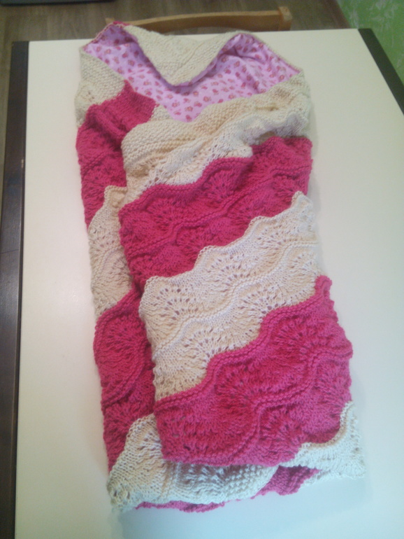 Пледы для малышейВязала подруге в подарок к рождению дочери. Нитки 100% шерсть, подкладка из детской байки. Узор простой "павлиний хвост".Размер 110×110.