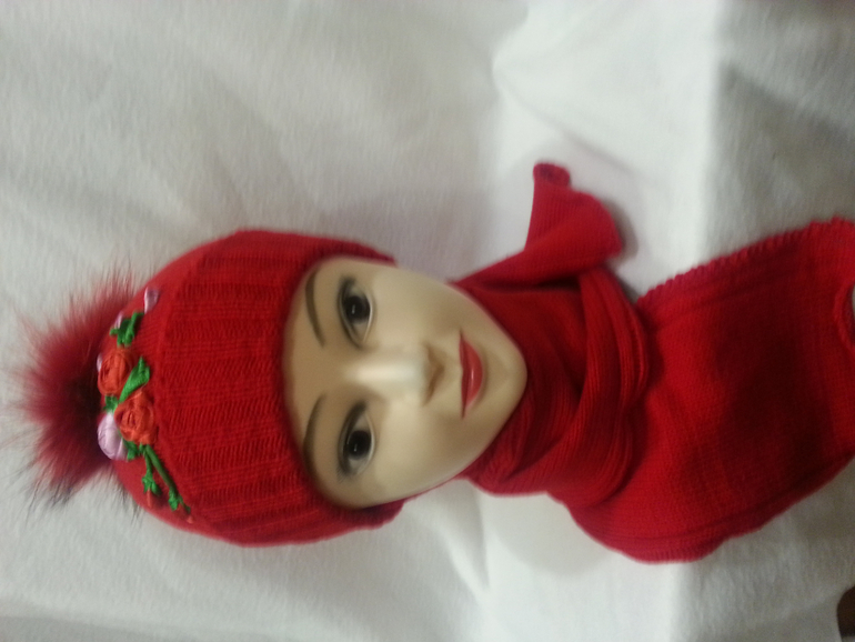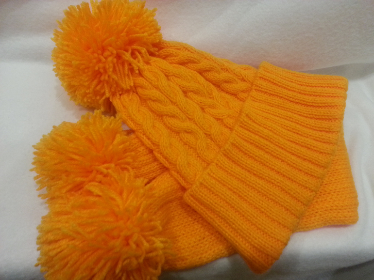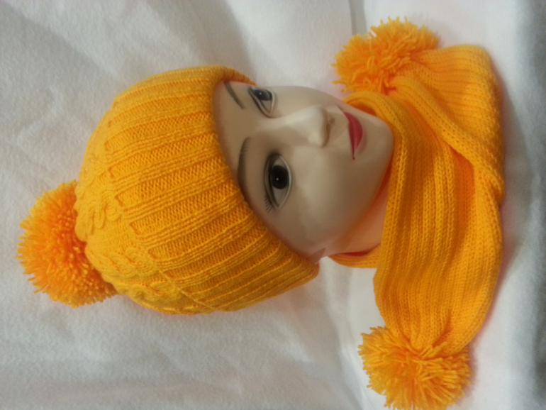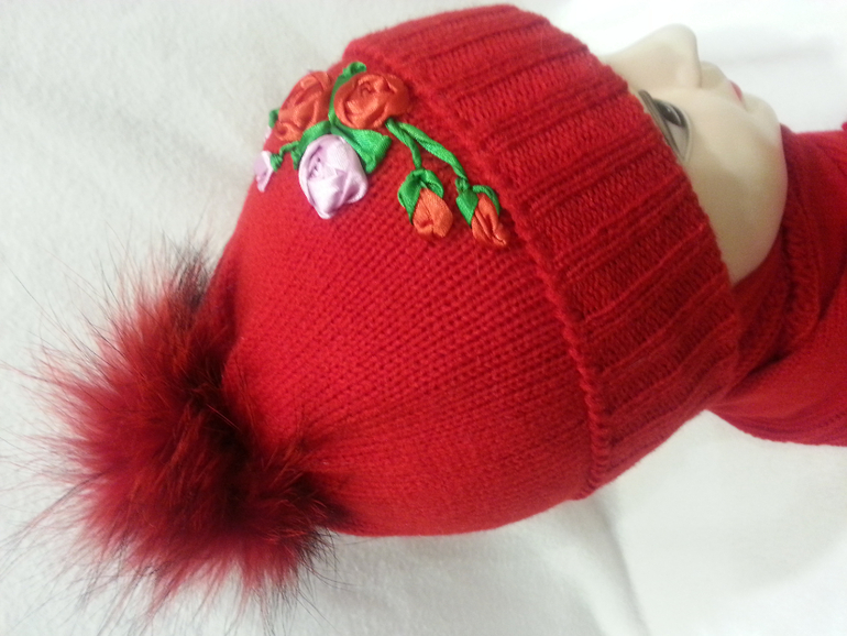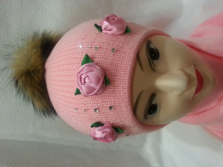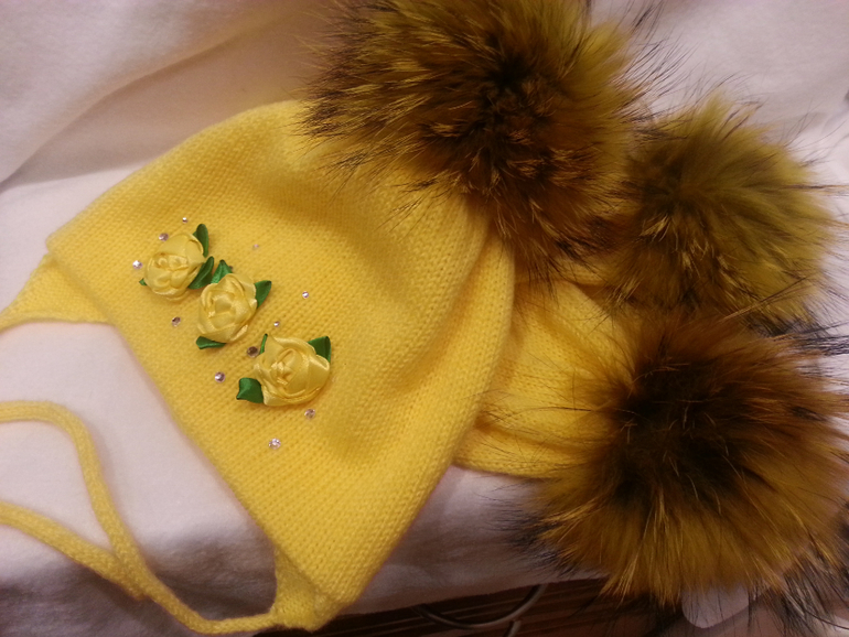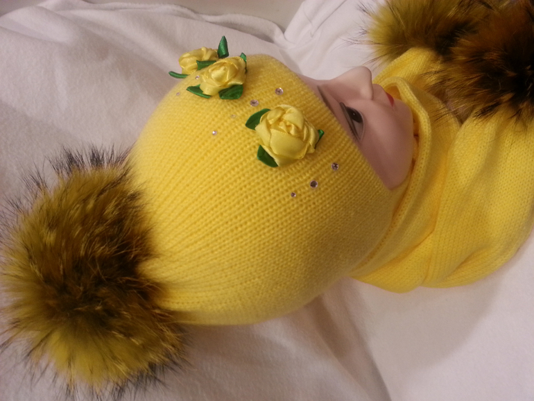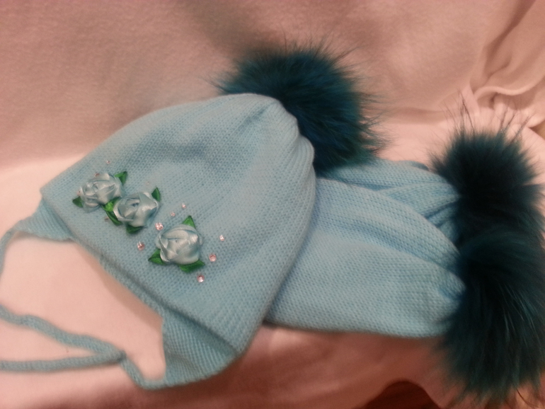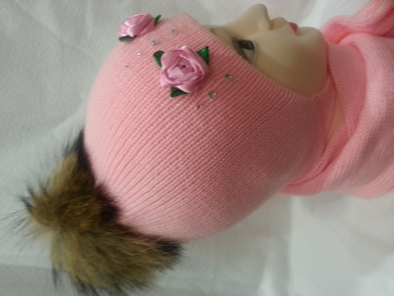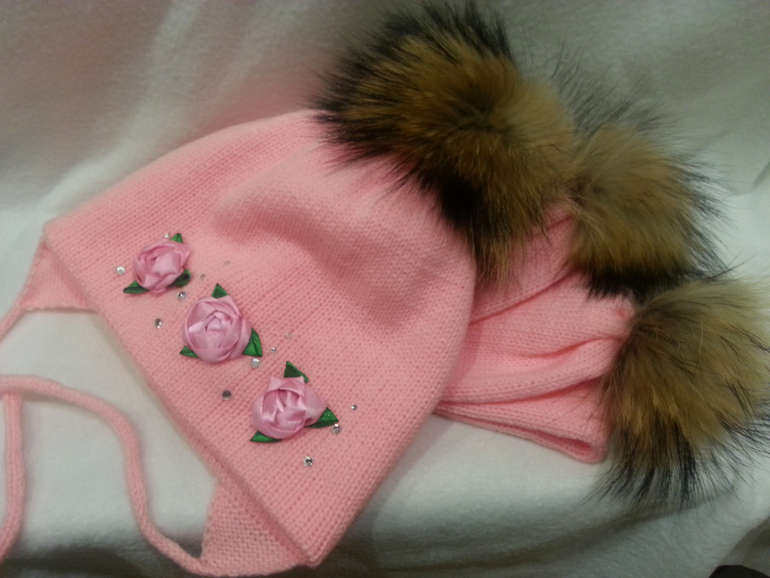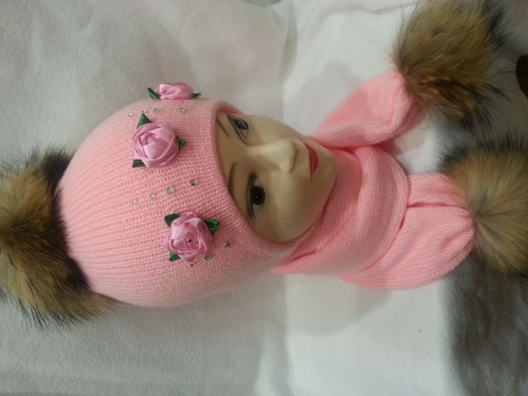 1. Комплект: шапочка с помпоном + шарфик с 2-мя помпонами