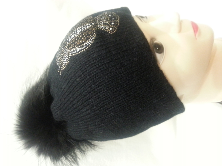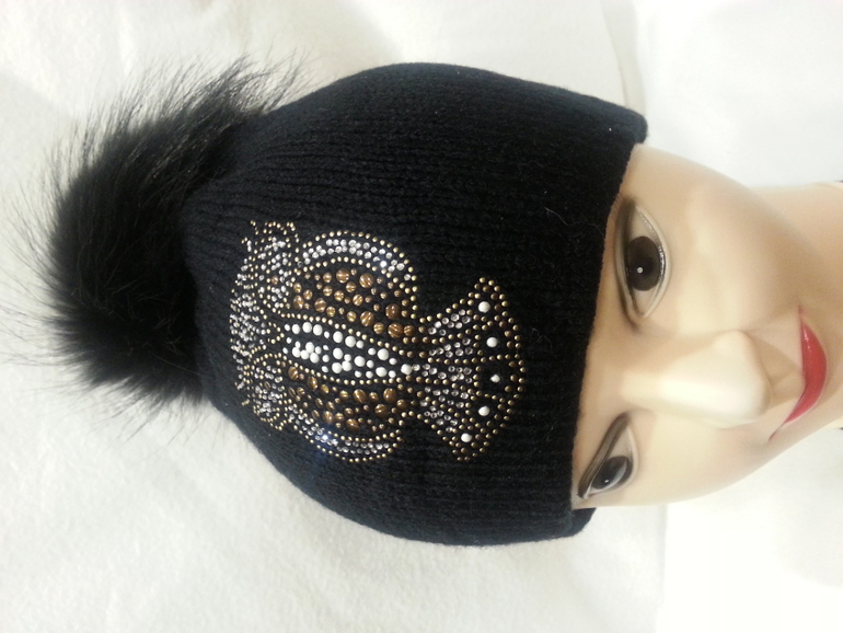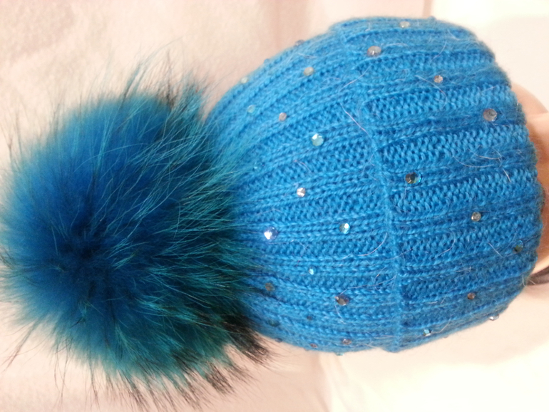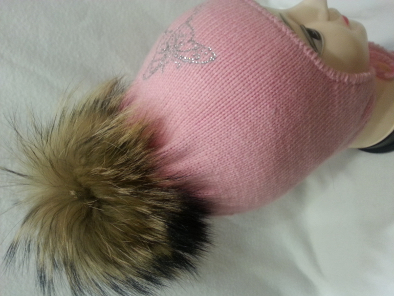 а откуда забирать?8. Шапочка на флисе с ушками50 % мериносовая шерсть, 50% фибрапомпон — натуральный енот, съемный (на ленточках)Отделка — аппликация из страз "Бабочка"р. 52-54цена 2000 р. 1300 р.