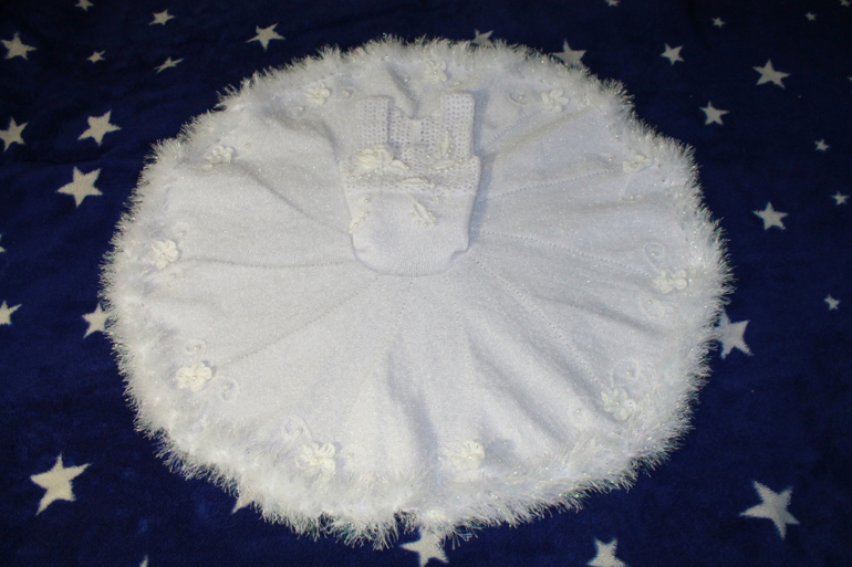 Опушка платья и сапожек из этой пряжи(ушло 2,5 мотка):