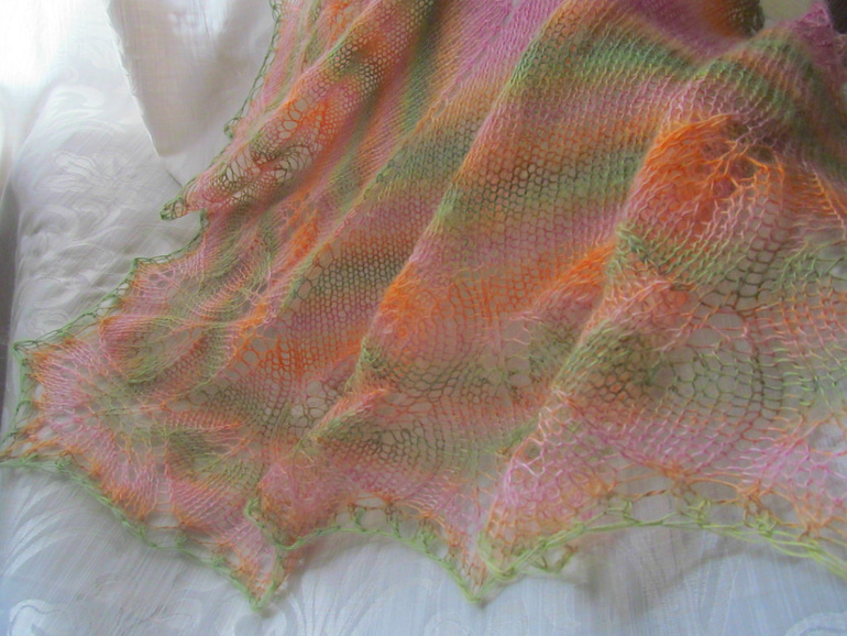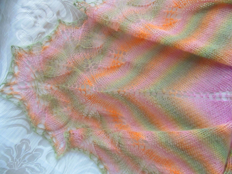 Шали, накидки для женщинНастоящее название шальки -Ginkgo Shoulderette Shawl by Maggie Magali. Но в моей расцветке уж очень она нежная, прозрачная, настоящее воспоминание. Вязалось легко, бамбуковыми спицами 3.25 мм. Шалечка не большая, уютная, плечи закрывает, по спинке до пояснички достаёт, не колючая. Блокировку нитка не очень держит, но в этом варианте она и не важна.