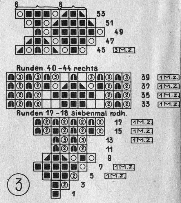 Обозначение 1M.z - это петли назад, т.е столько петель, сколько обозначено цифрой переснять на последнюю спицу (на правую) предыдущего ряда.