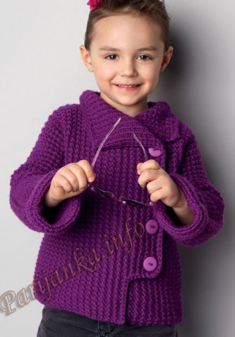 На правой полочке сделать 4 петлицы после 3-ей петли, первую над 10 прибавленными, след.через 5,5 см. Пришить кнопки на том же уровне, но на другом крае формируя скрещение. Пришить напротив пуговицы.