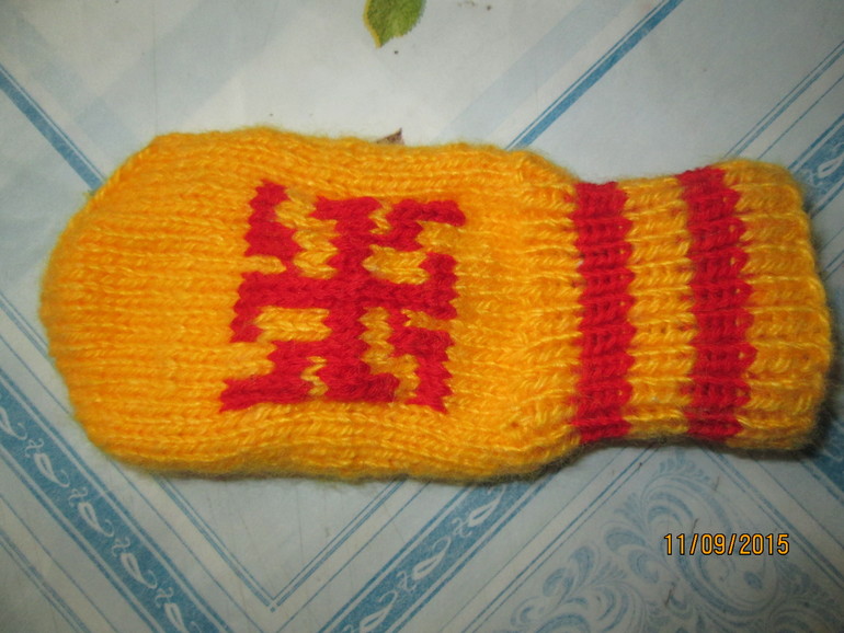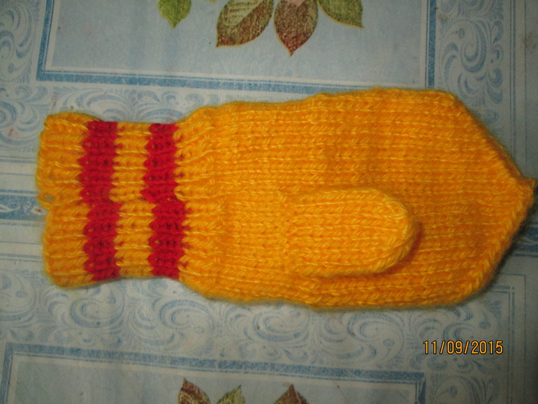 Спасибо, что похвалили. Мне ещё пальчик распускать и довязывать, сынишке оказался маловат.Я не левша, и за рядами я слежу. у меня сдвиг с самого первого ряда начинается еще до другого цвета, в носочках так же. Толи надо крепче стягивать первую и последнюю петлю, или как-то их аккуратно соединять. Вот ломаю голову