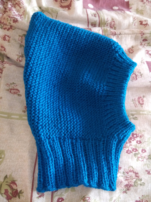 Ну у нас не настолько суровая зима, да и поперечные рубчики от платочной вязки не очень продувает. Если ветер сильный, то шлем хорошо под капюшон влазит. А для отдельных морозов и сильных ветров есть шапка с овчинкой внутри.