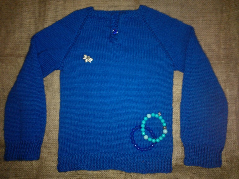 А синяя это моя первая проба регланом вязать.Немного намудрила с воротником.
