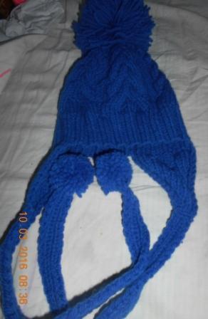 Шапочка для мальчика с оригинальными завязками и большим помпоном.