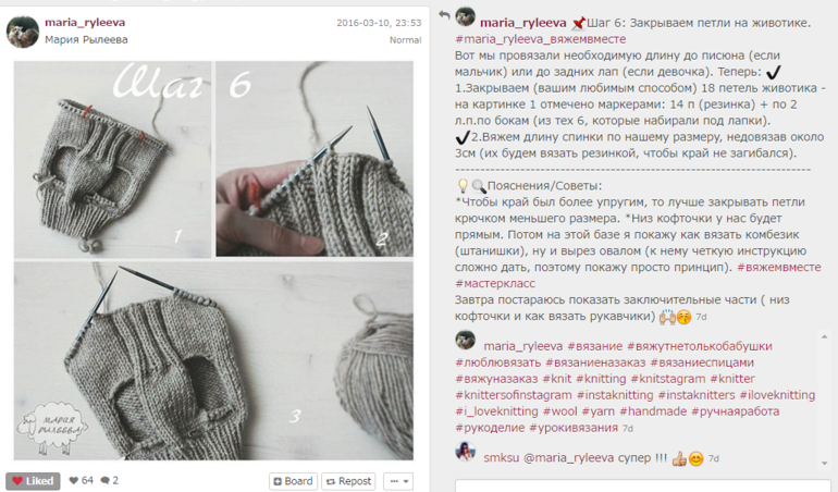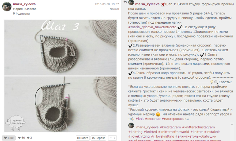 В инстаграме можно найти по тегу #maria_ryleeva_вяжемвместе
